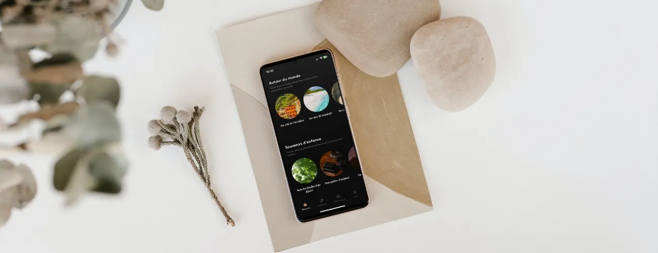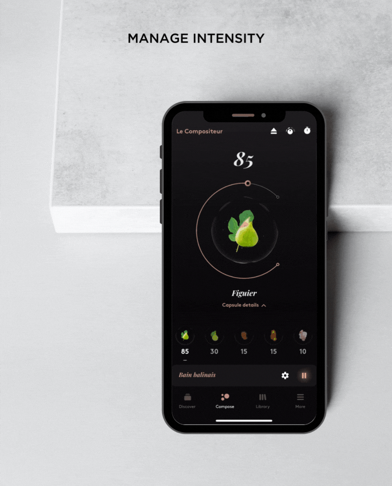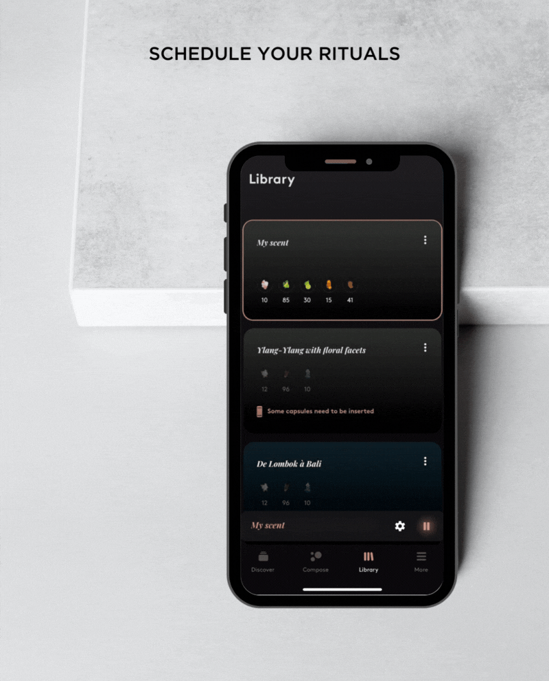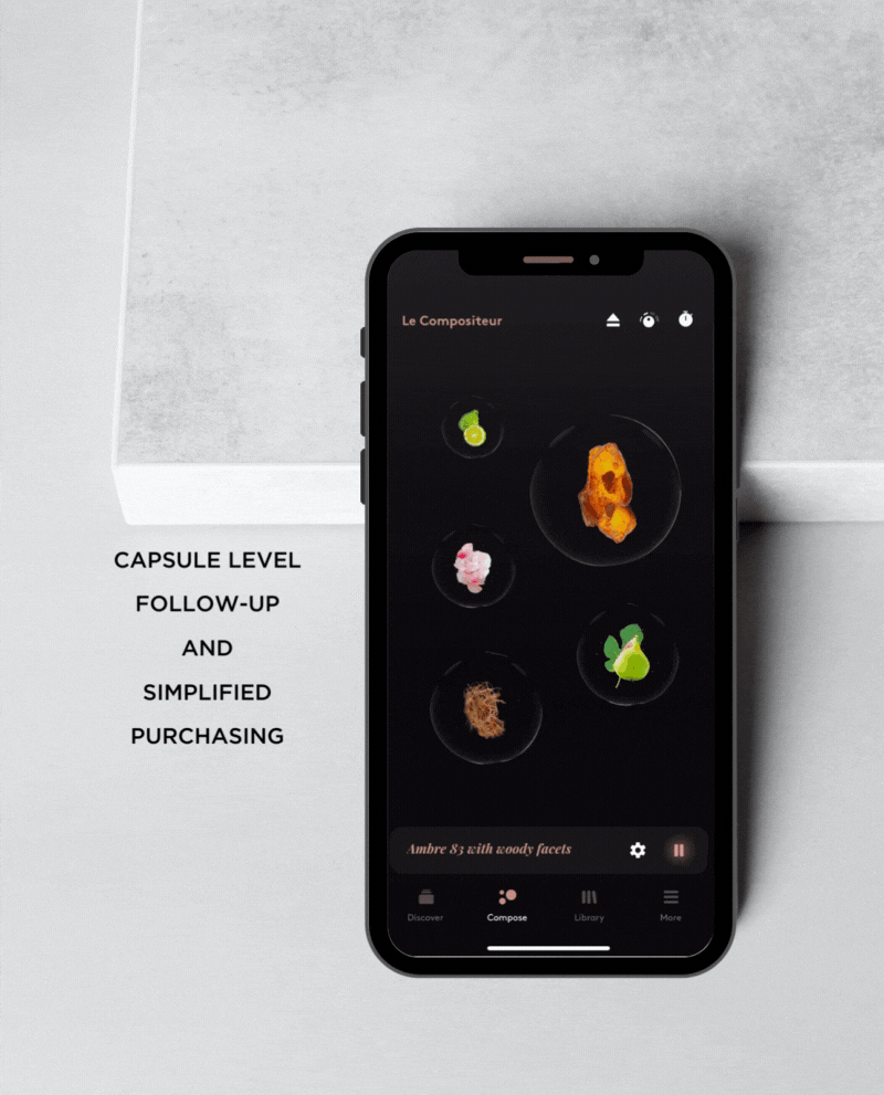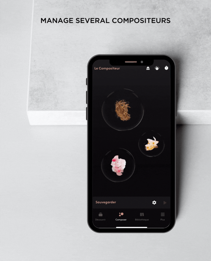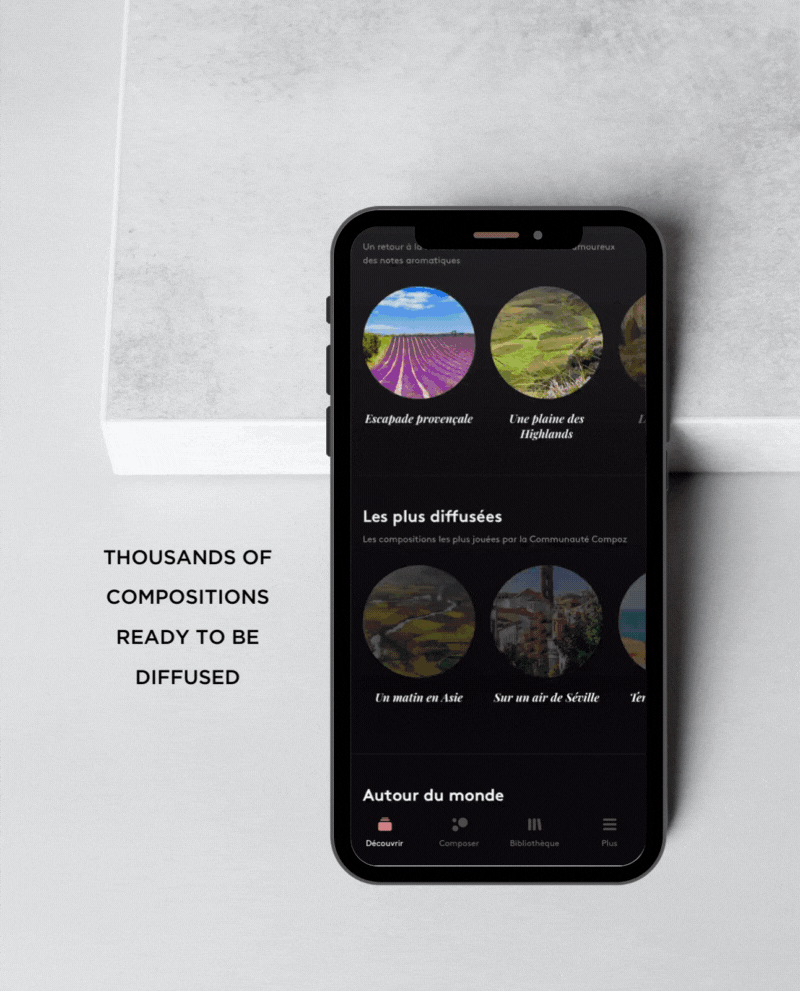 COMPOZ PARIS 앱을 사용하면 수백 개의 향기 플레이리스트를 탐색하고,